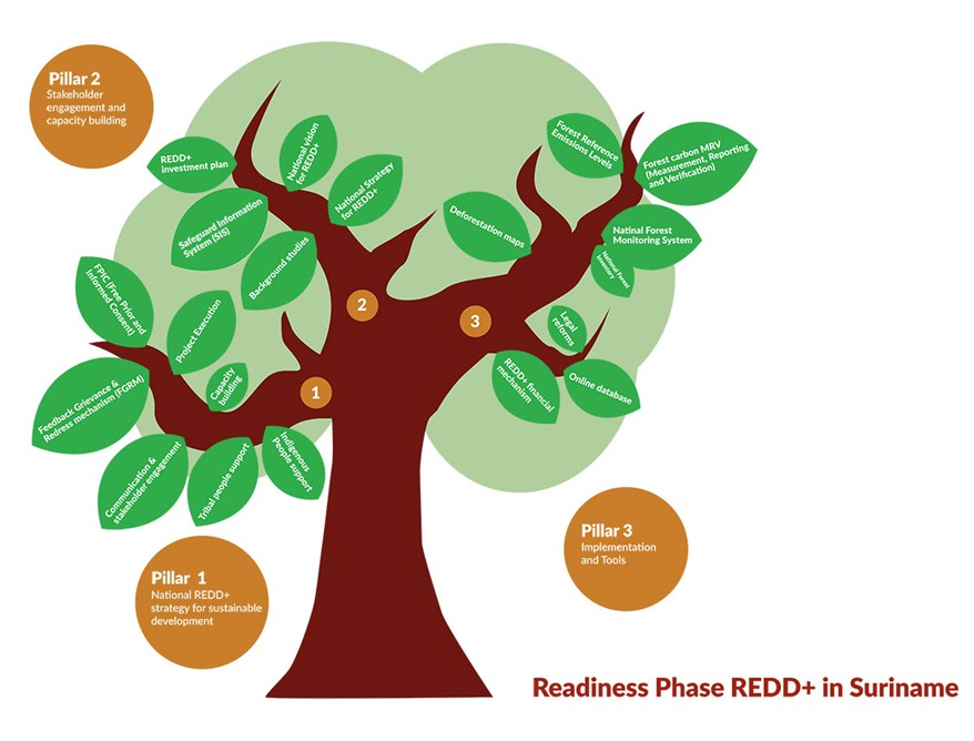 The national REDD+ project in Suriname is organized around three key pillars, known as: